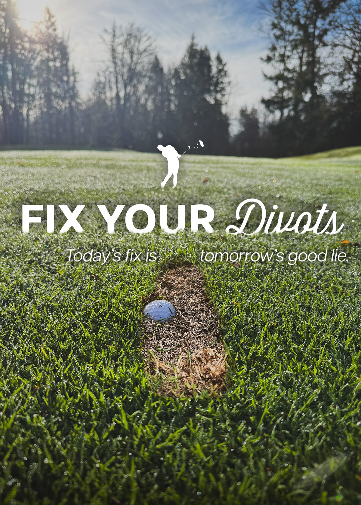 Properly repairing divots helps the turf recover as quickly as possible and helps to restore a smooth playing surface. An unrepaired divot can take months to heal, and it may never fully recover. Repairing divots maintains good playability for your fellow golfers and sets a positive example of caring for the course.